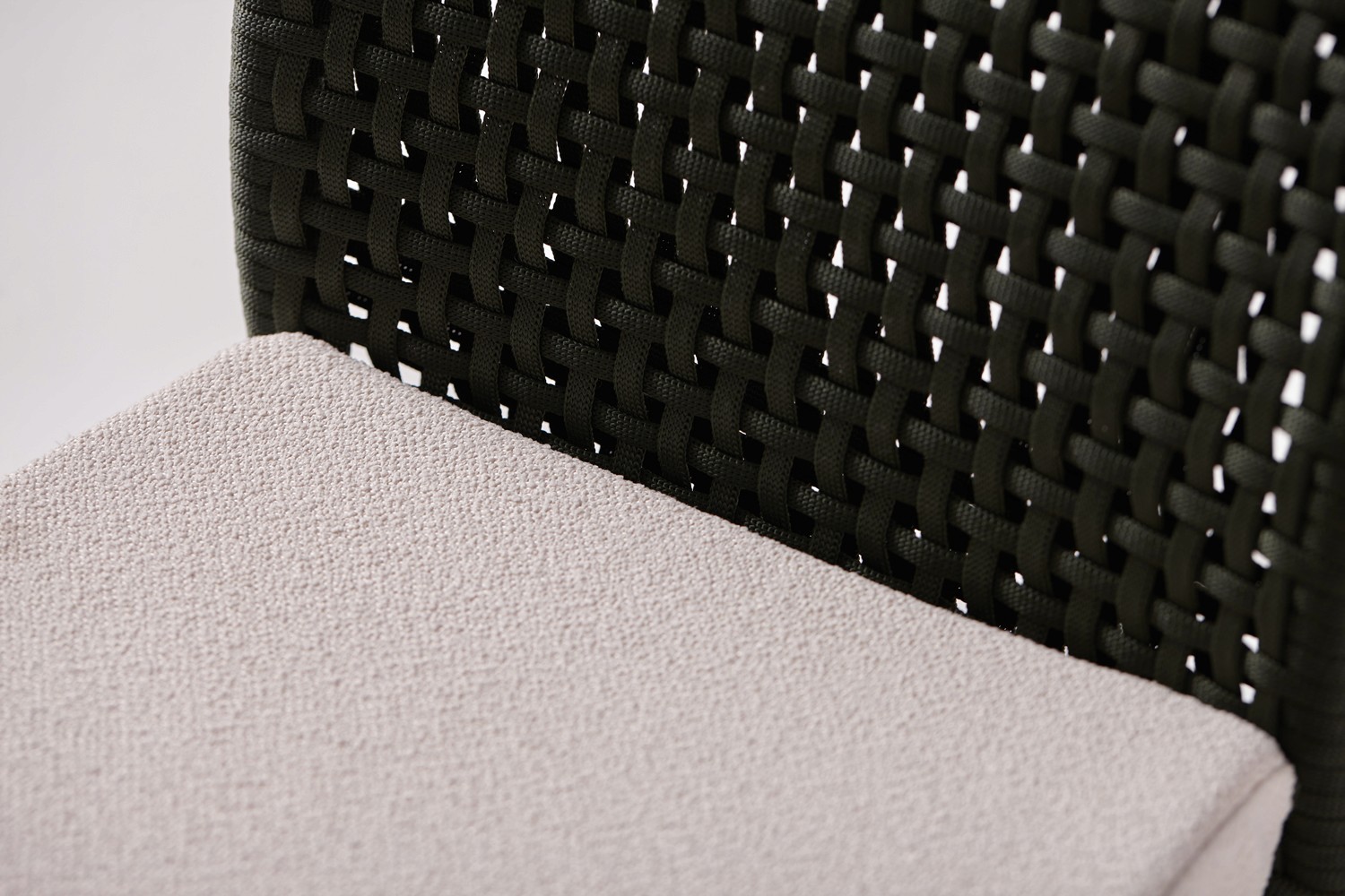 Estrutura de Alumínio com Pintura Eletrostática, acabamento artesanal em Corda Náutica e Tecido Outdoor