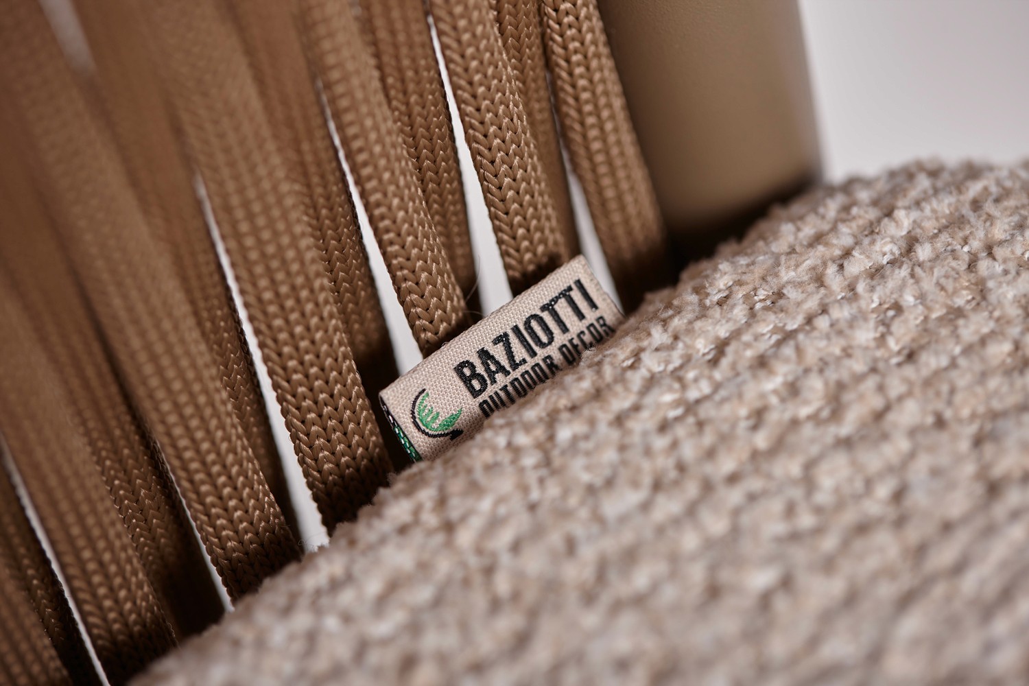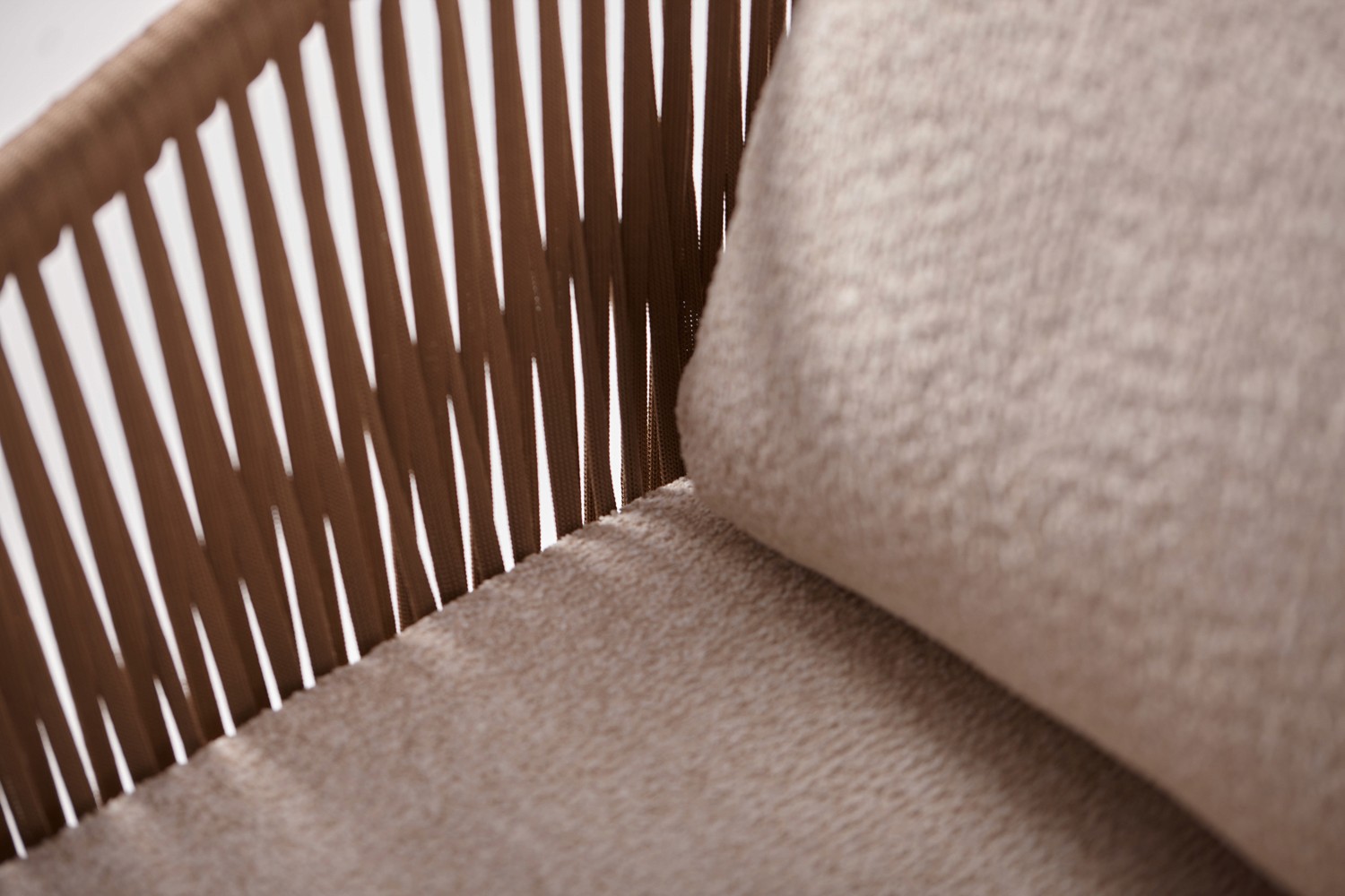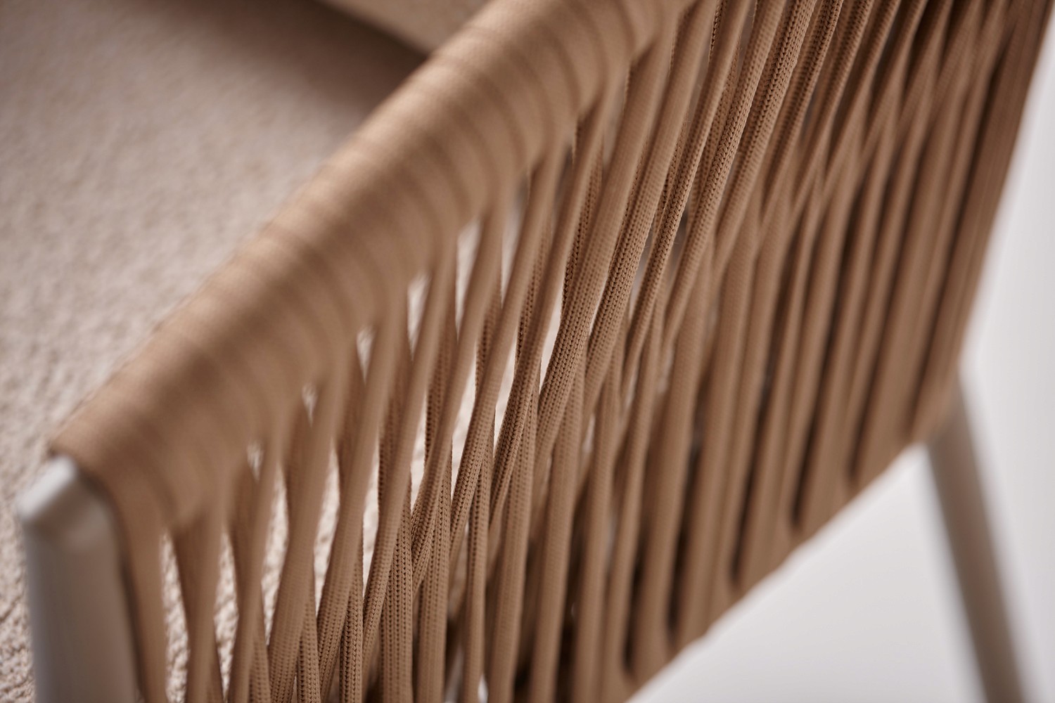 Estrutura de Alumínio com Pintura Eletrostática, acabamento artesanal em Corda Náutica e Tecido Outdoor