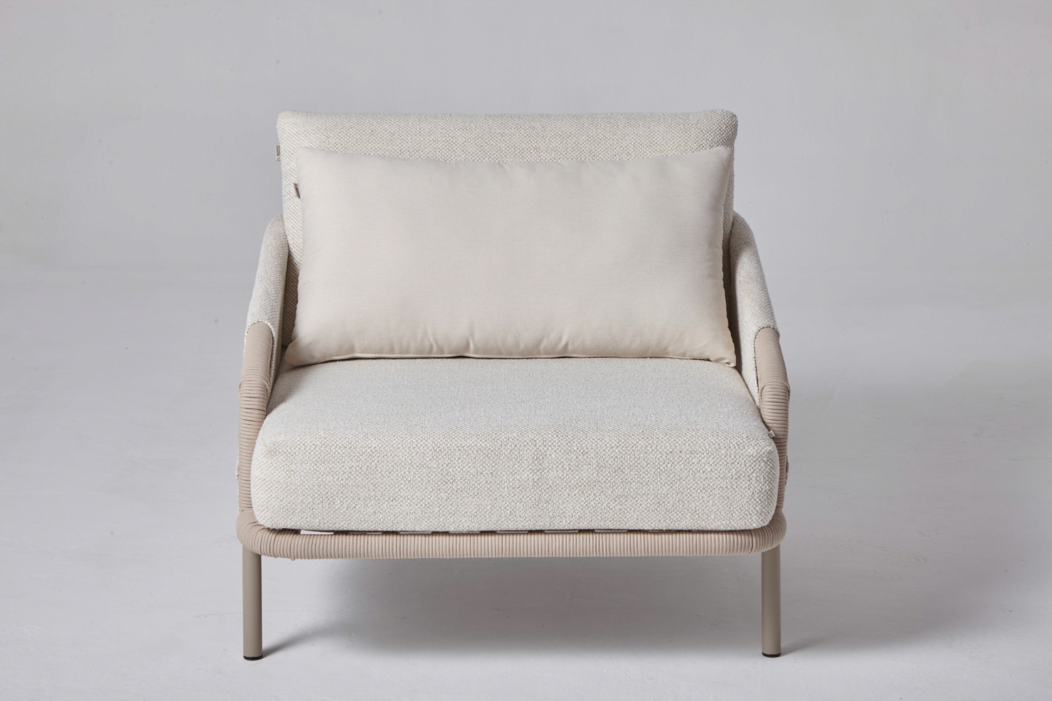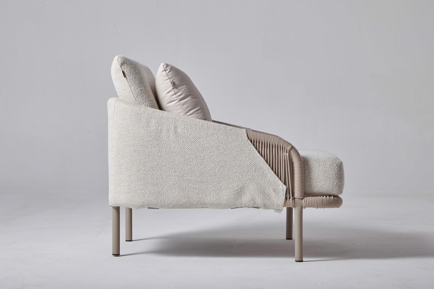 Estrutura de Alumínio com Pintura Eletrostática, acabamento artesanal em Corda Náutica e Tecido Outdoor importado