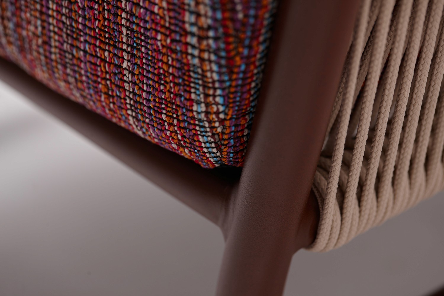 Estrutura de Alumínio com Pintura Eletrostática, acabamento artesanal em Corda Náutica e Tecido Outdoor importado